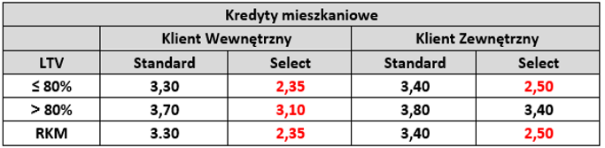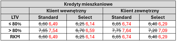 Od 10.02.2025 r. bank obniża stałe oprocentowanie kredytów hipotecznych w tzw. ofercie „Zima najlepsza na swoim”. W stosunku do poprzedniej marża zostaje obniżona o 0,17%.