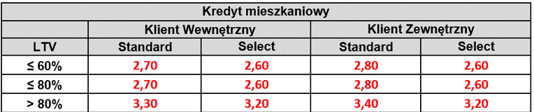 Po 5 latach kredyt zmieni się na oprocentowanie zmienne. Oprocentowanie to obniżyło się w stosunku do poprzedniej oferty o symboliczne 0,01%. Marże dla tego kredytu uzależnione są od kilku elementów. Wielu osobom będzie trudno wybrać przez to dla siebie najkorzystniejszą ofertę. A oto jak przedstawia się wysokość marż i od jakich elementów zależeć będzie jej wysokość.