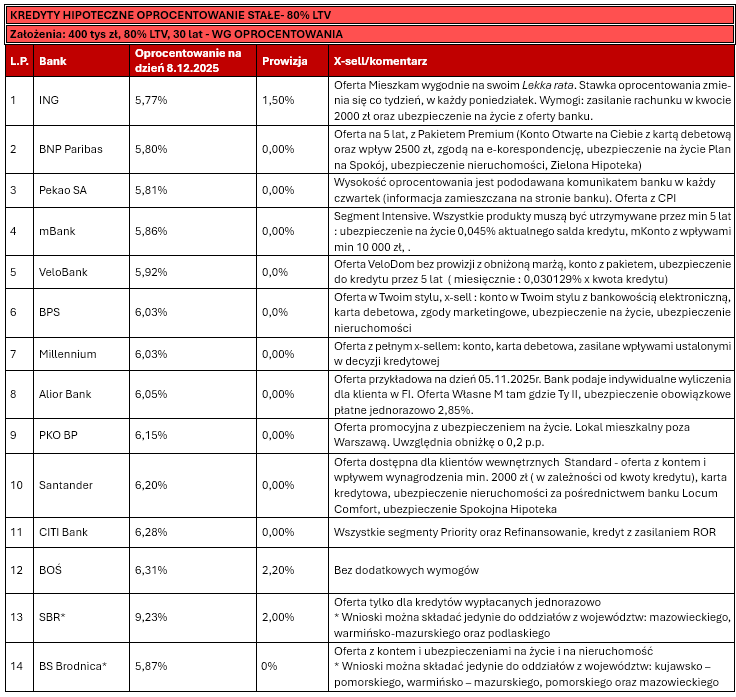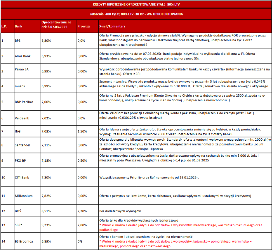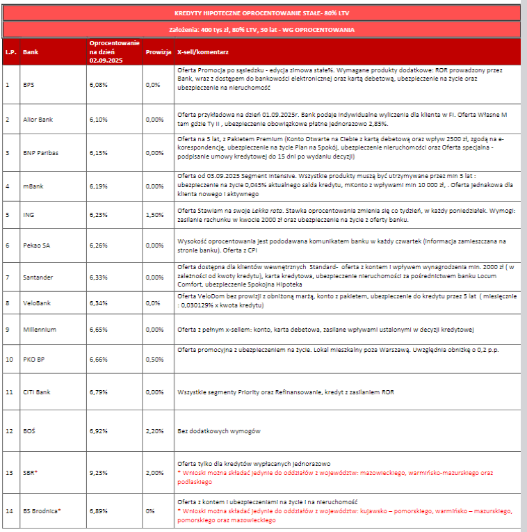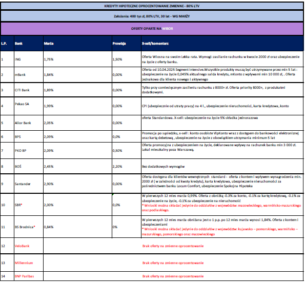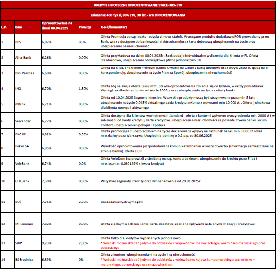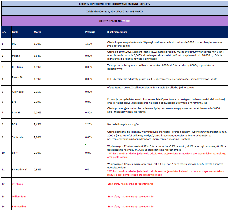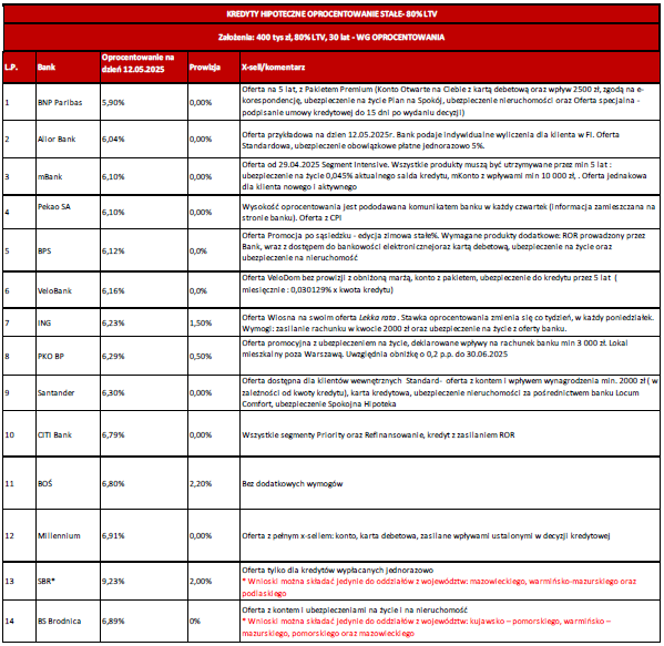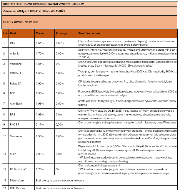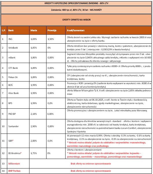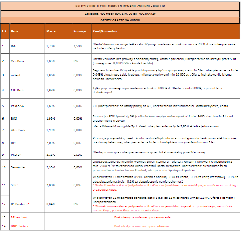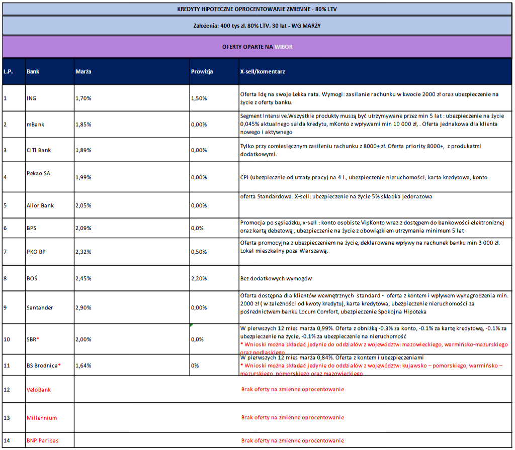 TOP oferty – oprocentowanie zmienne LTV 80%