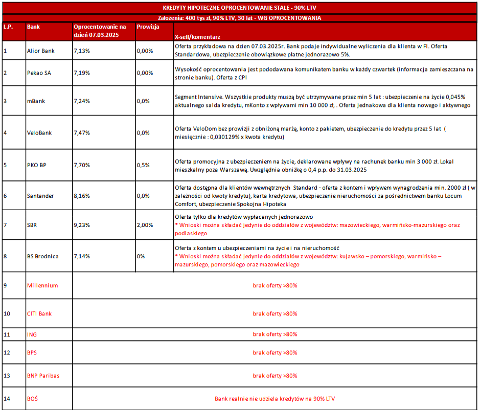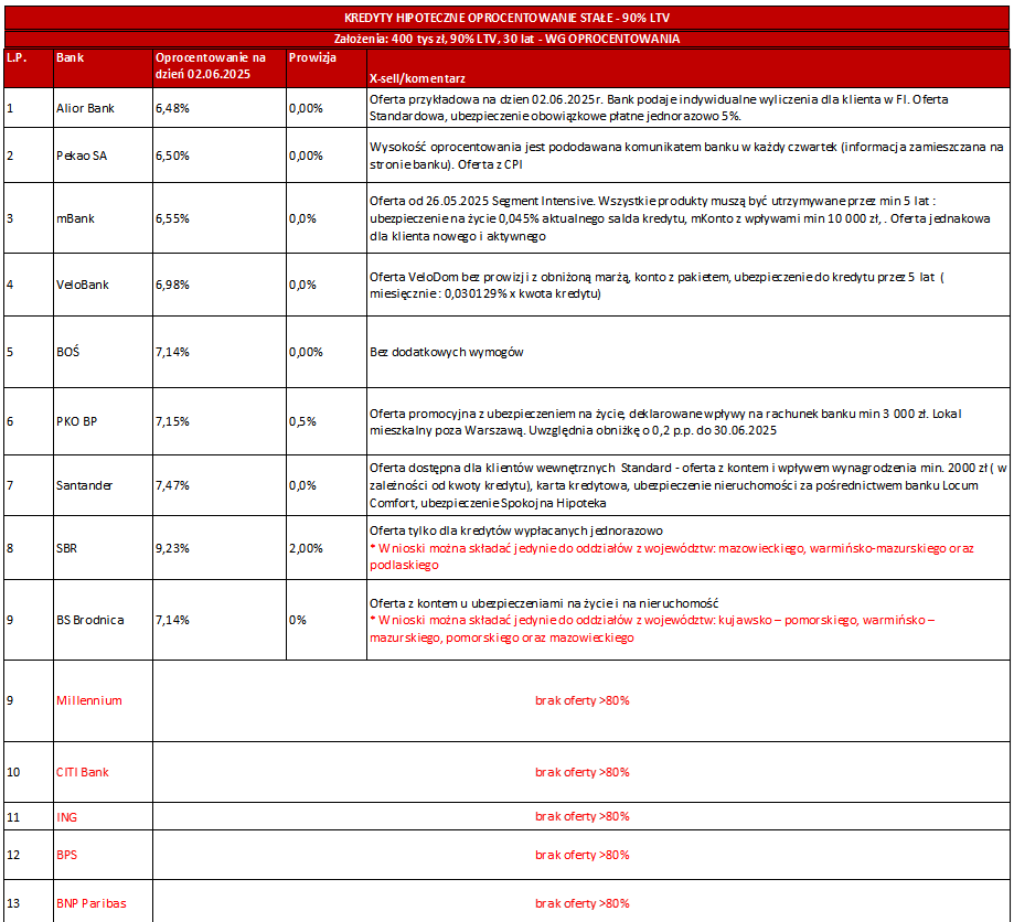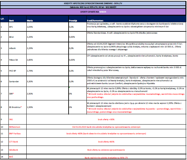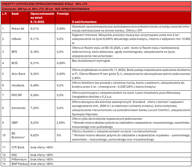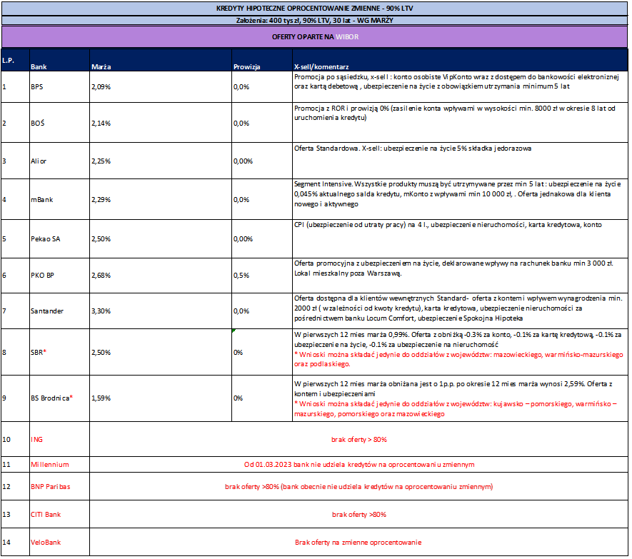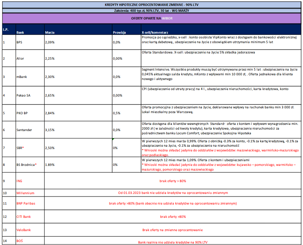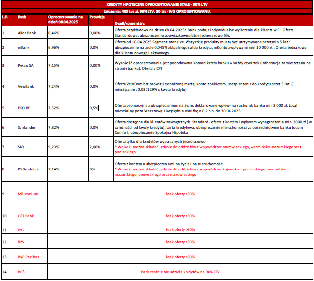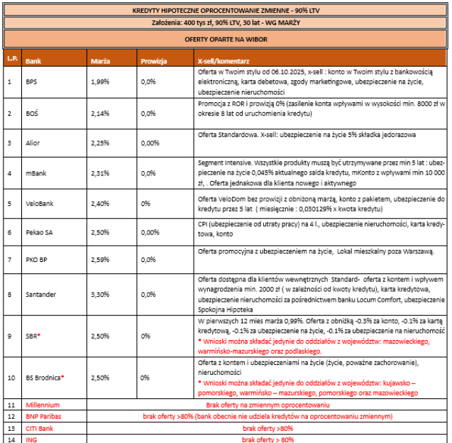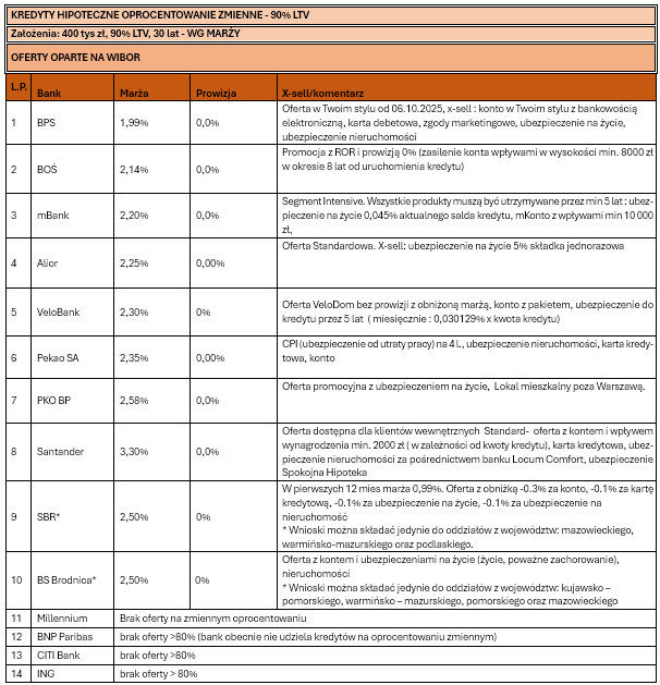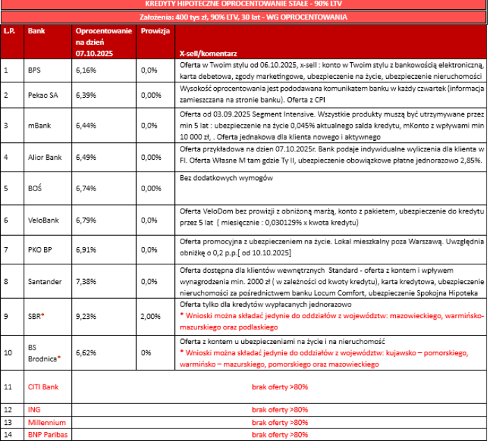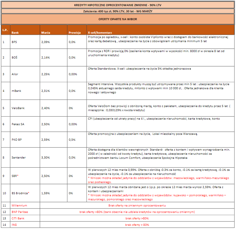 TOP oferty – oprocentowanie zmienne LTV 90%